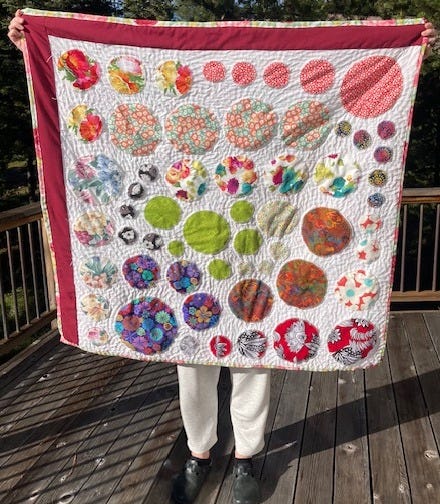 Now, it has been nearly two months since grandma was with us and the quilt is complete. The first quilt I’ve ever made that I won’t get to show her in person. Created by the skill I learned from her when I was only 6. A quilt full of circles, for a full circle moment, to honor the circle of life. Grandma was there moments after I was brought into the world and I was there with her the moments after she left.